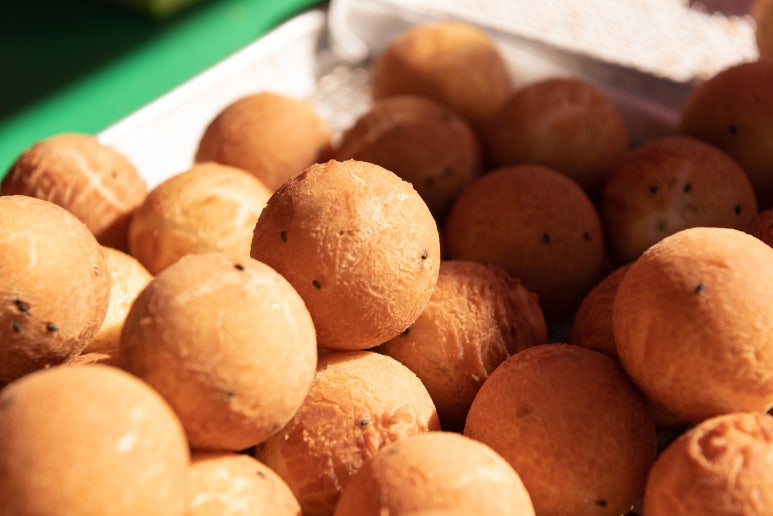 구경하던 찰나, 딸이 그새를 못참고 깨찰빵 하나를 집어 바로 먹었네요 :D