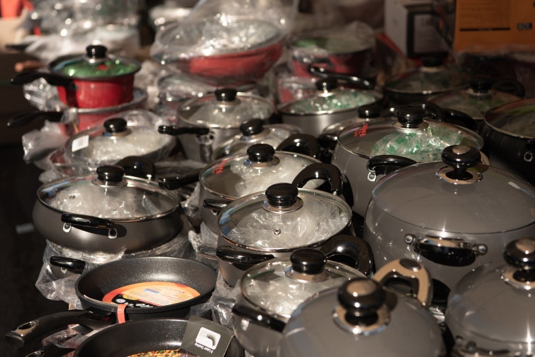 각종 물품들과 시기에 맞는 꽃들,